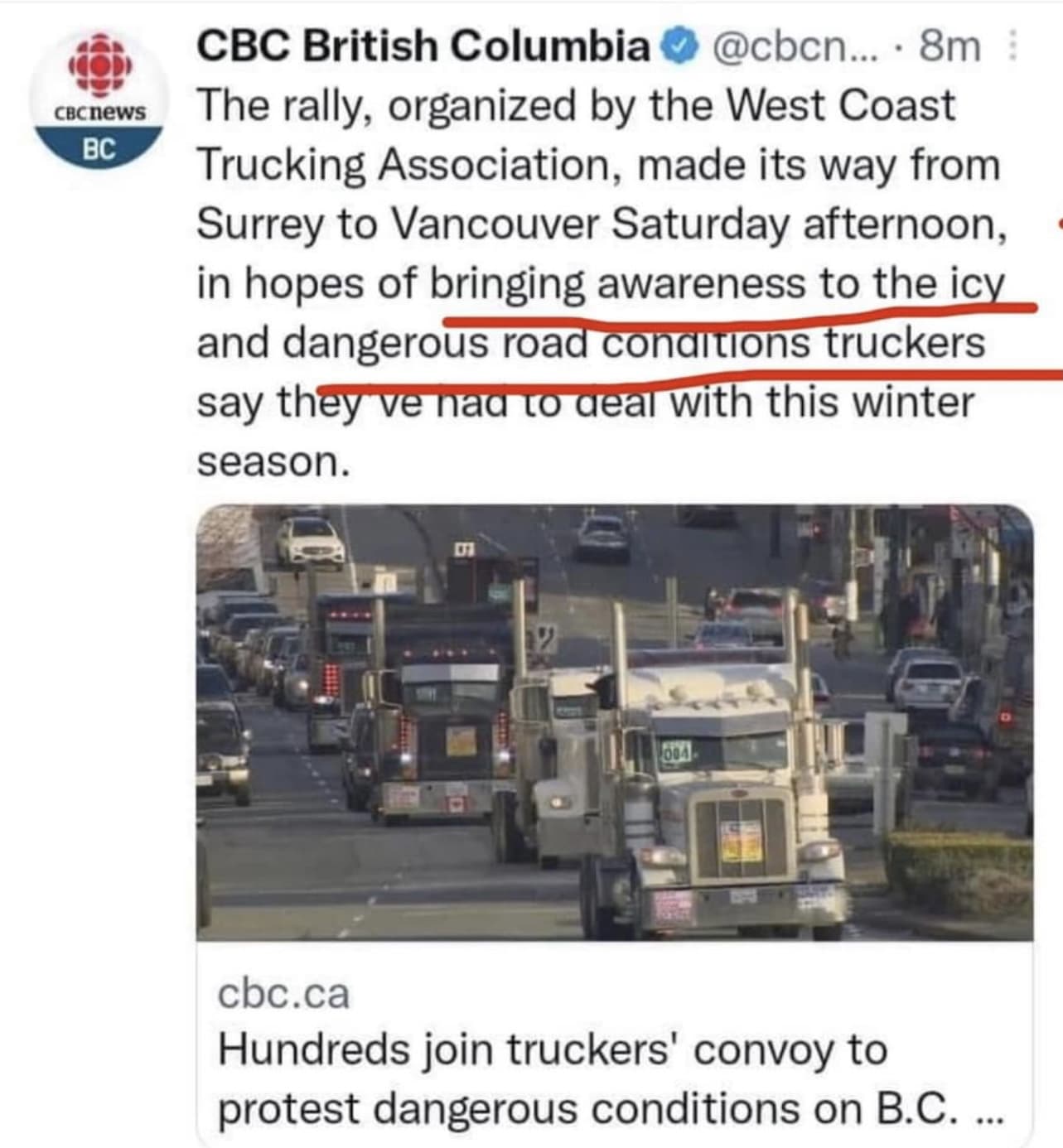 There is a national trucker convoy of a few thousand truck now who have committed to flooding Ottawa and blocking land border entry points until the mandates end.