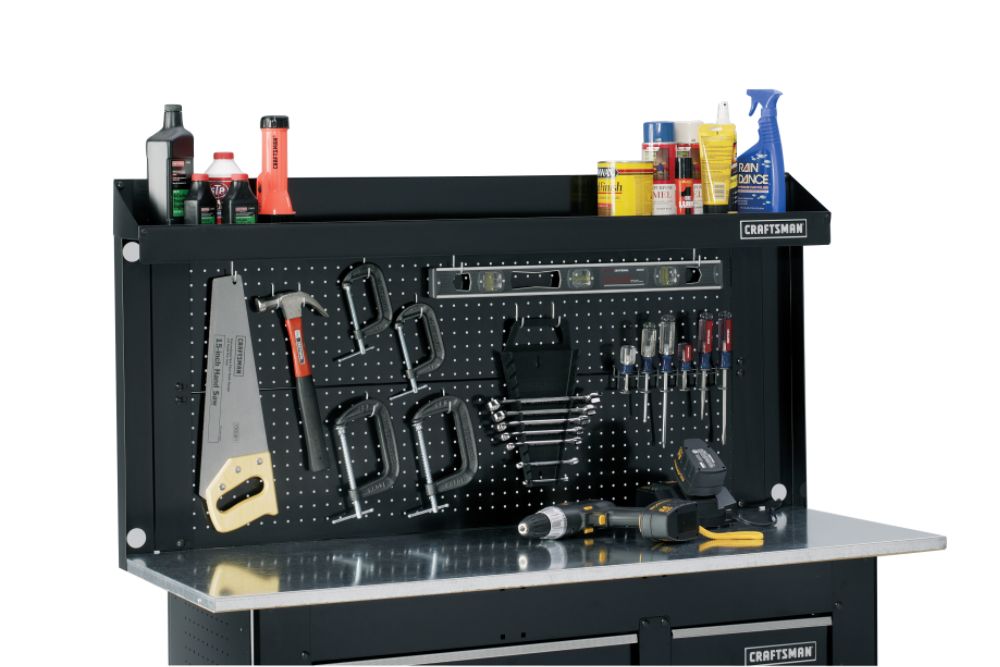 I picked up something like this from Sears a few years back for a stupid cheap price of like $225…has a pegboard backwall with top shelf and undermount light, few nice drawers and a large lower shelf. Stability is a bit iffy when hacking away on some metal in the vise.