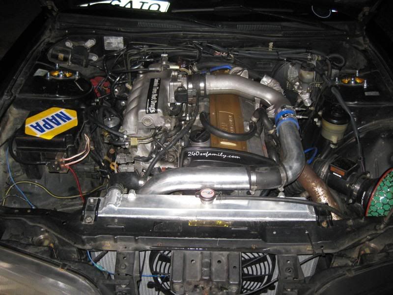 hey im felix just sayin what up its been forever since i have been on here. i joined the airforce back in 05 and left buffalo and now im in NJ. so here is my current ride hope you enjoy! it had a beat up ass twin cam and some B.S. springs and stock struts when i got it. shortly after i did the five lug stuff and put some tien super drifts on it. then in may i bought a r33 clip and powered by max coil-overs and RUCAs and toe rods and a set of 17x10.5 mustang wheels all the way around which im stretching 225/45 on them in the rear and 215/45 in the front. and a bunch of other stuff that i had to get for the swap. here are some pics of the madness. And by the way the MAX stuff is F@$#IN GREAT!!!. And thanks To jeff for coming down to NJ to wire up my swap.