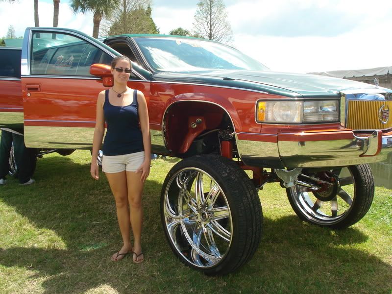 Car looks goofy but the girl looks decent