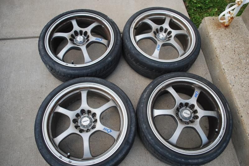 I am selling a set of 4, silver with a polished lip. They came with a car I purchased years ago and I’ve mostly used them for storing the car over the winter. Two of the wheels have some curbing. They look fine at 10 ft away even with the brake dust.