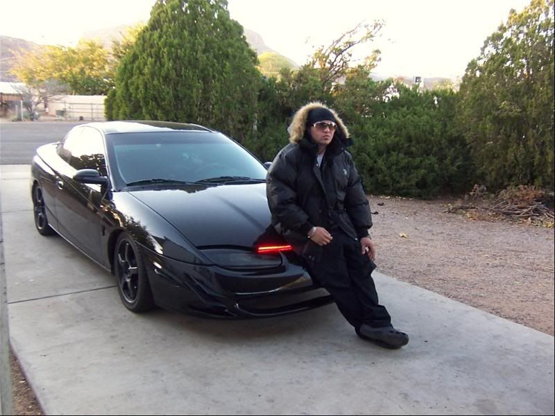 haha at the red neon light in the front of his car. really?