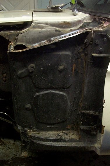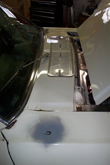 To get at the 200 spotwelds that hold the cowl to the unitbody, you must remove the fenders, hood, windshield, and dashpad. So, start by pulling the ashtray…