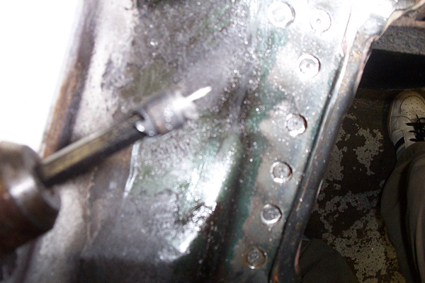 Why the whole project is taking place… this is driver-side, under the dash looking up, you can see the wiper arm. Rotted completely through.