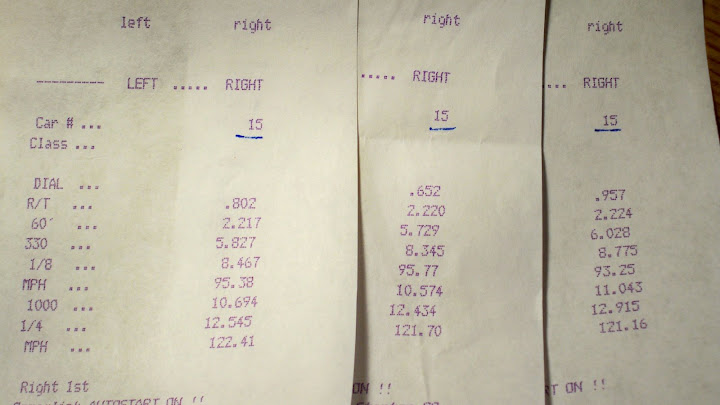On my 2nd pass I bogged off the line and on my 3rd pass I broke 3rd gear and that was it for the day.