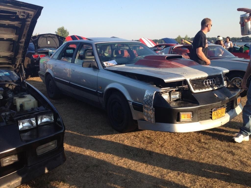 I am trying to wrap my head around why someone would do that? Maybe couldnt afford a new bumper for the audi 100/a6 so he decided a camaro would work out just as well? The hood scoop really completes the package