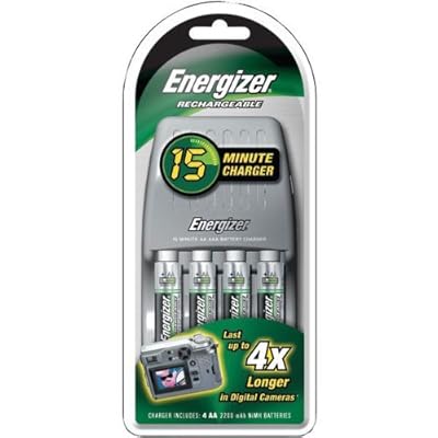 Standard NiMh AA’s can’t be effectively charged in 15 minutes, and that kind of rapid charging tends to dramatically decrease cycle life. Get 2+ sets and simply swap them out. I always carry 4 sets of AA’s in my camera bag. That way, I have no need to charge them immediately.