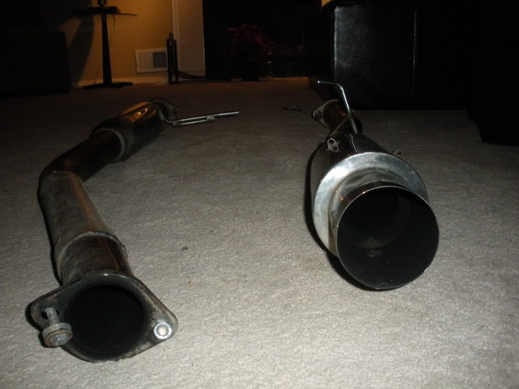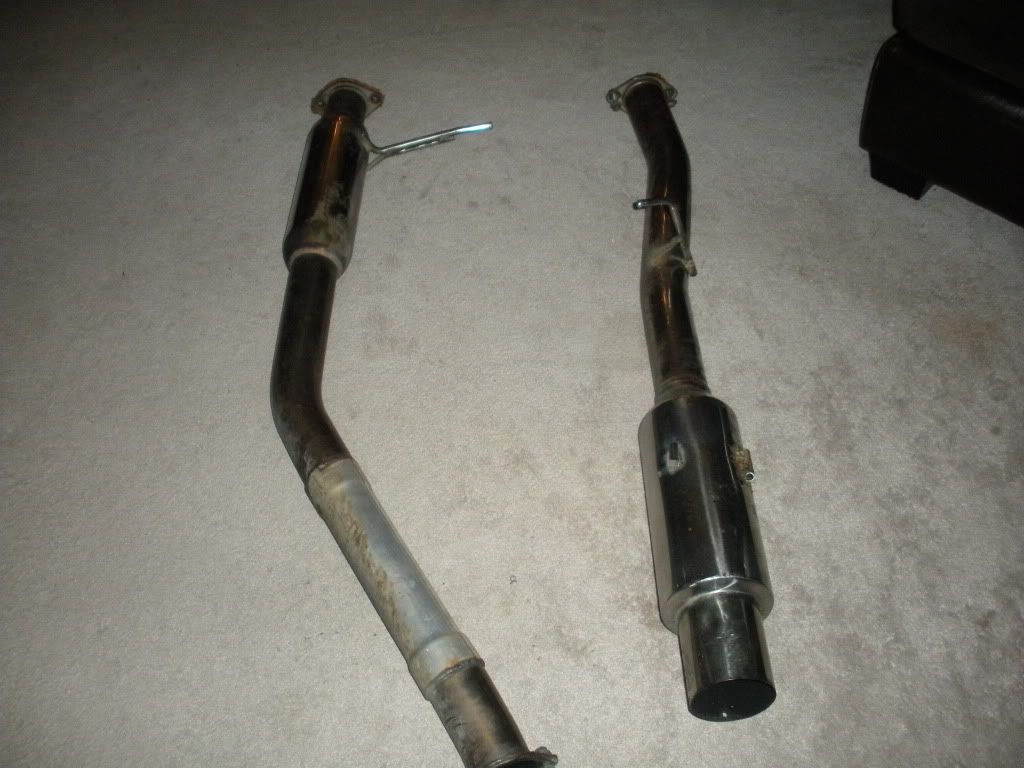 3 inch cat back exhaust with resonator. Some scrapes no holes. The exhaust hanger fell off last drift practice of the year. 200 obo