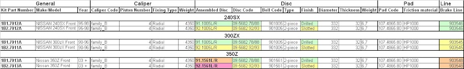 Kit 1B1.7012A in this table I made up to show the similarities to the 300Zx and 350Z kits.