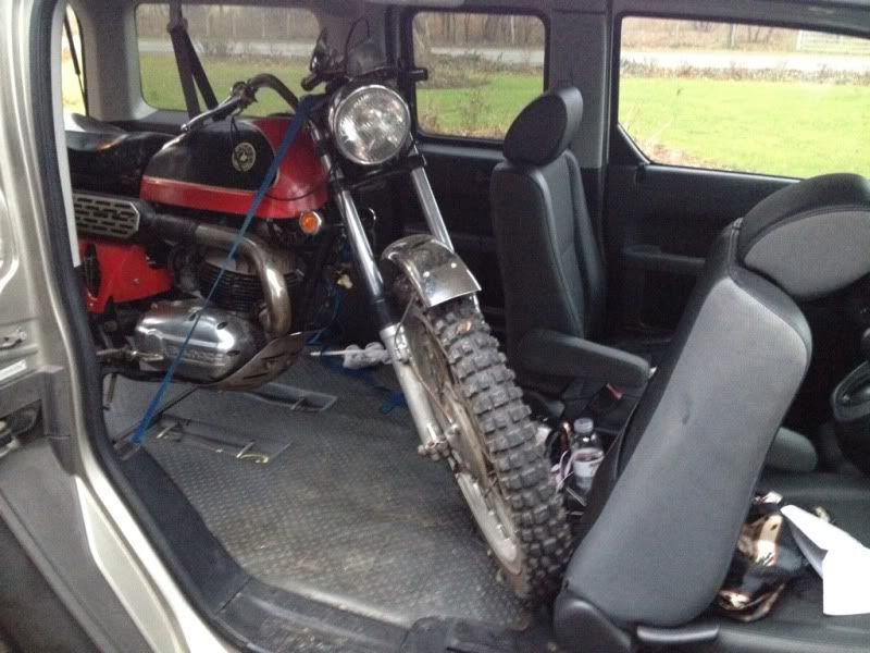 I’m always astounded by people using non-traditional trucks to transport bikes. When I sold my CB750 a dude came from chicago to buy it, and showed up with a early 2000’s jeep grand cherokee…the thing barely fit, had it layed on it’s side with the gas tank removed, bars removed, and the front seat folded forward so the front wheel of the bike had a place to rest. The element was WAY better at transporting a bike haha. Now I only have one more person that needs to get their bike over here, and he posted in this thread :gay: